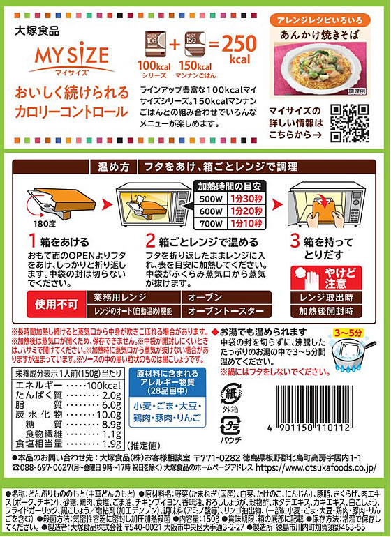 大塚食品 100kcalマイサイズ 中華丼 150g 1個※軽(ご注文単位1個)【直送品】