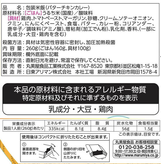丸美屋 バターチキンカレー ごはん付き 260g 1個※軽(ご注文単位1個)【直送品】