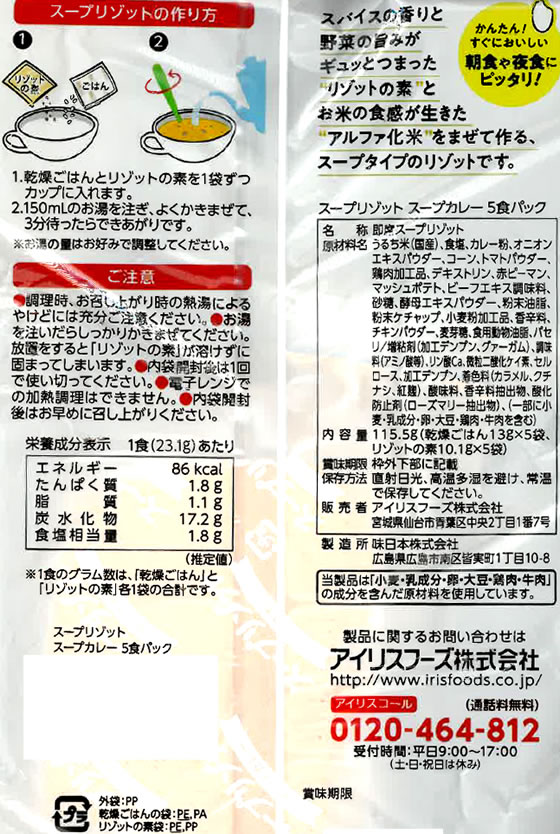 アイリスフーズ すぐにおいしいスープリゾット スープカレー 5食入 1パック※軽(ご注文単位1パック)【直送品】