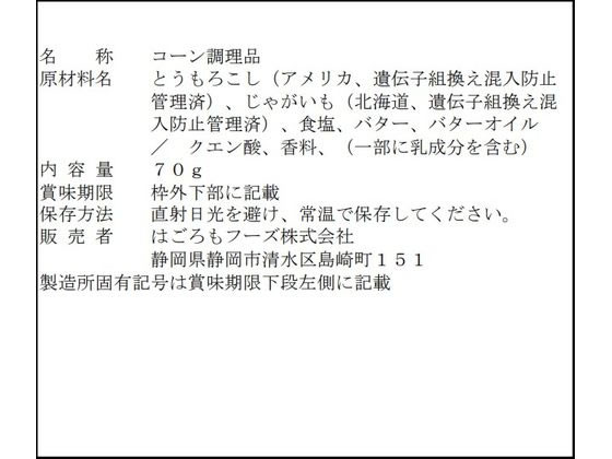 はごろもフーズ シャキッとコーン じゃがバタコ 70g 1個※軽(ご注文単位1個)【直送品】