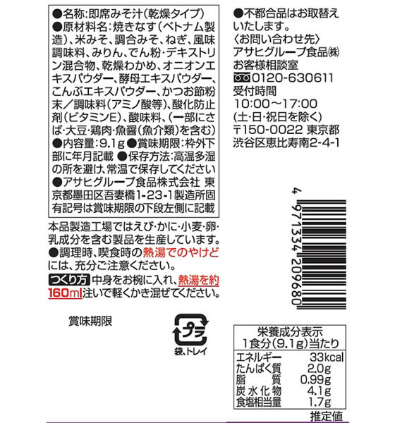 アマノフーズ いつものおみそ汁贅沢 焼なす 1個※軽(ご注文単位1個)【直送品】