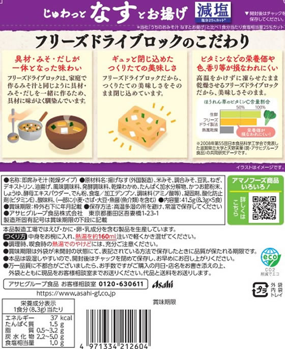 アマノフーズ 減塩 うちのおみそ汁 なすとお揚げ 5食×6袋 1箱※軽(ご注文単位1箱)【直送品】