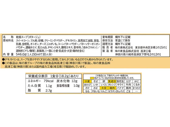 味の素 クノール カップスープ コーンクリーム 30袋入 1箱※軽(ご注文単位1箱)【直送品】