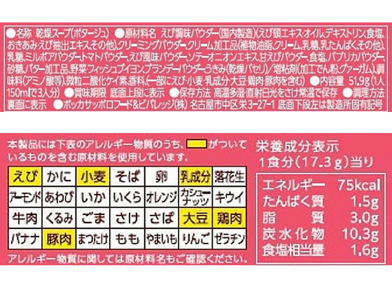 ポッカサッポロ じっくりコトコト 濃厚海老のビスク 3袋 1箱※軽(ご注文単位1箱)【直送品】