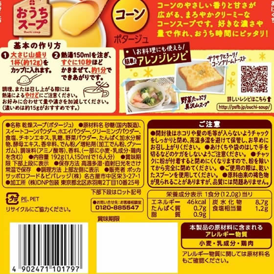 ポッカサッポロ おうちスープ コーンポータジュ 袋 192g 1袋※軽(ご注文単位1袋)【直送品】