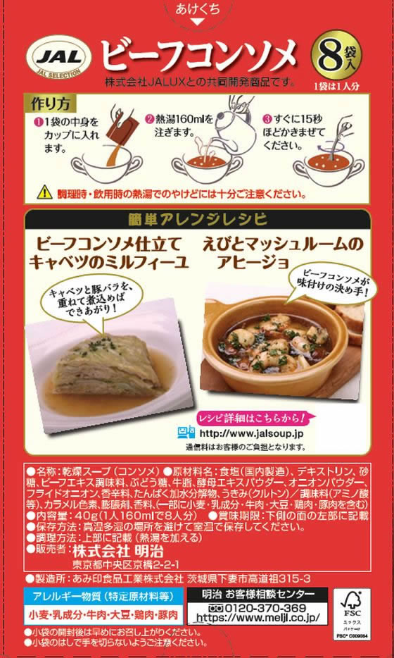 明治 JAL ビーフコンソメ 8袋入 1箱※軽(ご注文単位1箱)【直送品】
