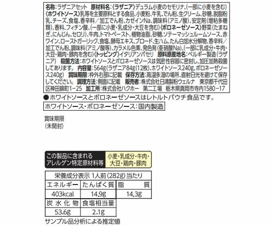 日清製粉ウェルナ 青の洞窟 ラザニア・エミリアーナ 1箱※軽(ご注文単位1箱)【直送品】