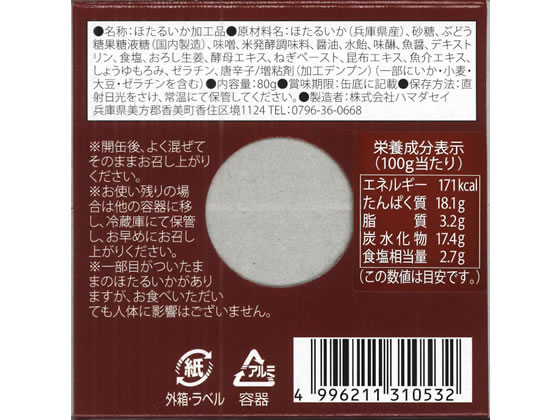 ハマダセイ ほたるいか 缶詰 みそ味 80g 1缶※軽(ご注文単位1缶)【直送品】