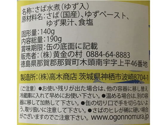 黄金の村 国産 寒さば 木頭ゆず水煮 1缶※軽(ご注文単位1缶)【直送品】