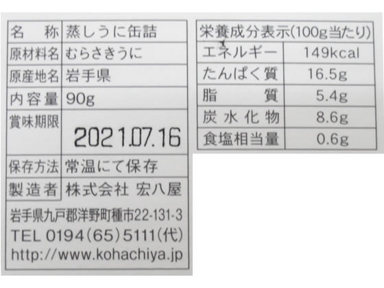 宏八屋 高級珍味 うに缶 1缶※軽(ご注文単位1缶)【直送品】