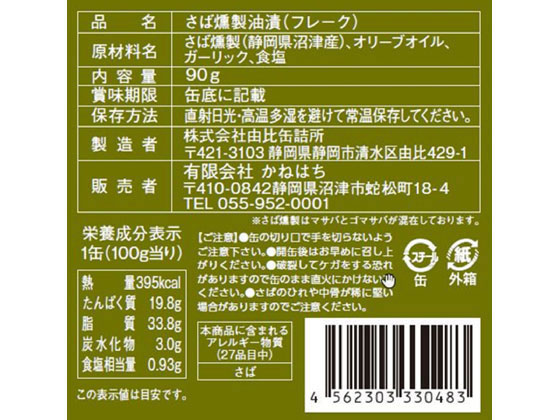 かねはち オイルサバディン ガーリック 90g 1缶※軽(ご注文単位1缶)【直送品】