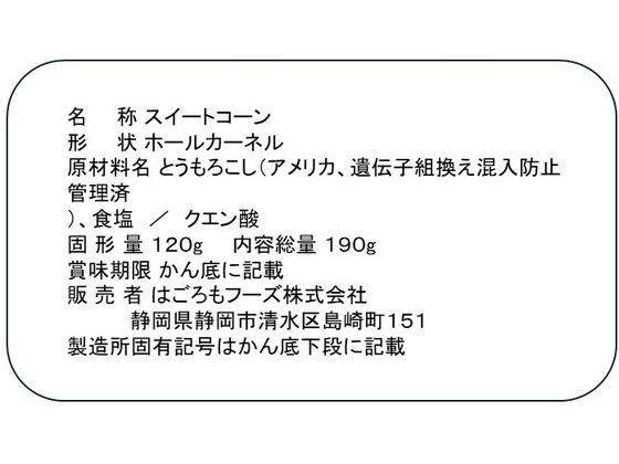 はごろもフーズ シャキッとコーン 190g 1缶※軽(ご注文単位1缶)【直送品】