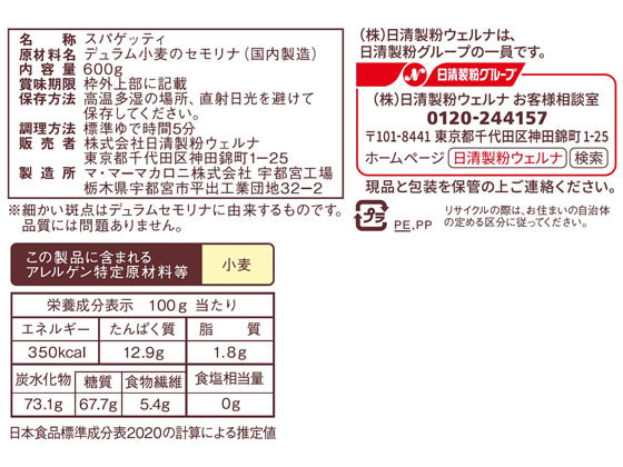 日清製粉ウェルナ マ・マー スパゲティ 1.4mm 600g チャック付 結束 1袋※軽(ご注文単位1袋)【直送品】