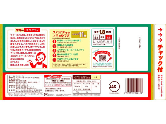 日清製粉ウェルナ マ・マー スパゲティ 1.8mm 600g チャック付 結束 1袋※軽(ご注文単位1袋)【直送品】