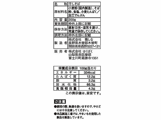 はくばく 木曽路御岳そば 200g 1袋※軽(ご注文単位1袋)【直送品】