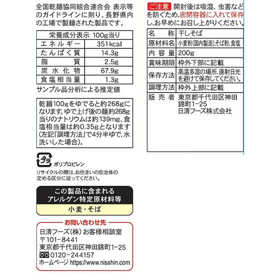 日清製粉ウェルナ 滝沢更科信州そば 200g 1袋※軽(ご注文単位1袋)【直送品】