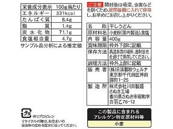 日清製粉ウェルナ 川田製麺 讃岐うどん 400g 1袋※軽(ご注文単位1袋)【直送品】