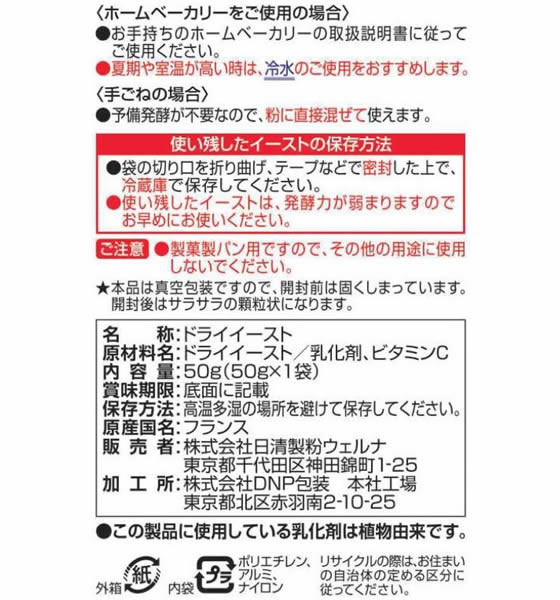 予備発酵が不要な顆粒タイプなので、粉に直接混ぜて使えます。 ●注文単位:1箱(50g)※メーカーの都合により、パッケージ・仕様等は予告なく変更になる場合がございます。
