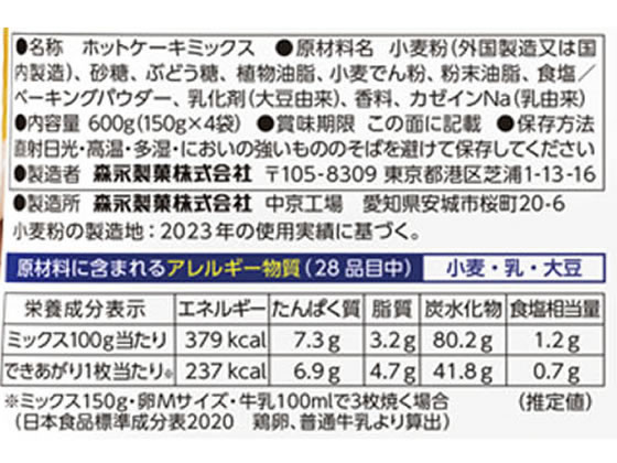 森永製菓 ホットケーキミックス 150g×4袋入 1パック※軽(ご注文単位1パック)【直送品】