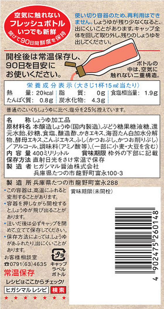 ヒガシマル醤油 牡蠣だし醤油 400ml 1本※軽(ご注文単位1本)【直送品】