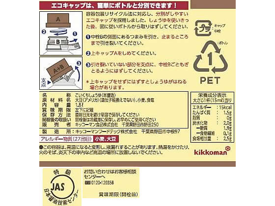 キッコーマン 特選丸大豆しょうゆ 1.8L ハンディペット 1本※軽(ご注文単位1本)【直送品】
