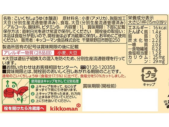 キッコーマン 減塩しょうゆ 1L 1本※軽(ご注文単位1本)【直送品】