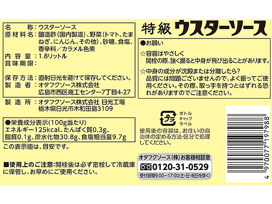 オタフク ユニオン 特級ウスターソース 1.8L 1本※軽(ご注文単位1本)【直送品】