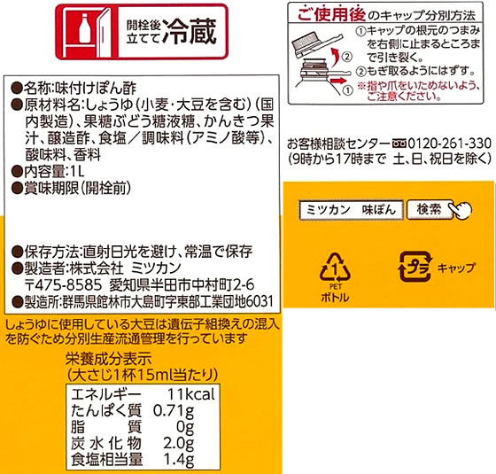 ミツカン 味ぽん 1L 1本※軽(ご注文単位1本)【直送品】