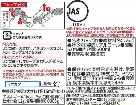 ミツカン リンゴ酢 500ml 1本※軽(ご注文単位1本)【直送品】