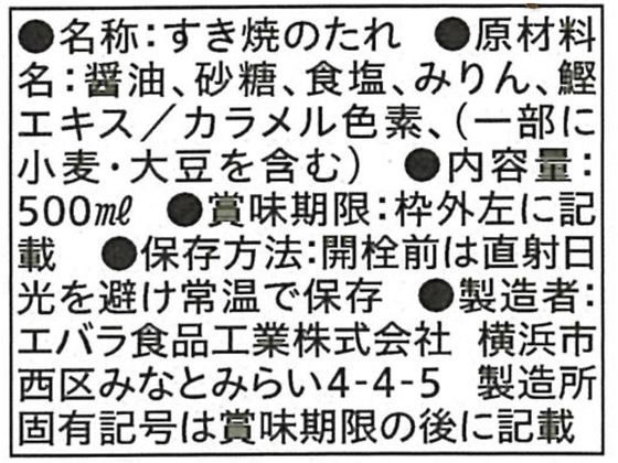 エバラ すき焼のたれ 500ml 1本※軽(ご注文単位1本)【直送品】