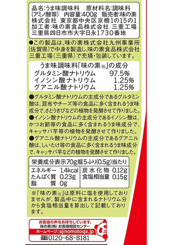 味の素 味の素 400g 袋 1袋※軽(ご注文単位1袋)【直送品】