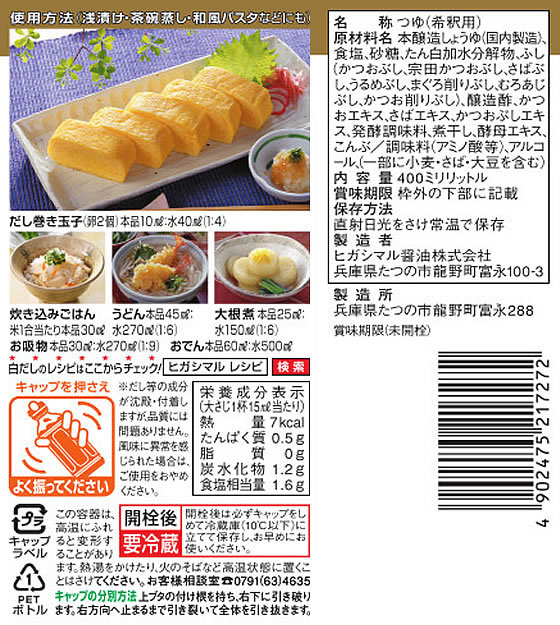 ヒガシマル醤油 京風割烹白だし 400ml 1本※軽(ご注文単位1本)【直送品】