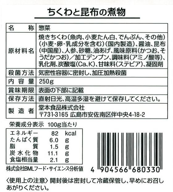 堂本食品 やさしいおいしさ ちくわと昆布の煮物 250g 1個※軽(ご注文単位1個)【直送品】