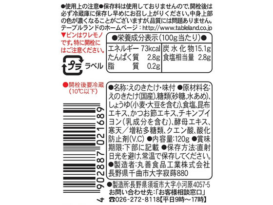 テーブルランド 信濃高原うす塩なめ茸60% 120G 1個※軽(ご注文単位1個)【直送品】