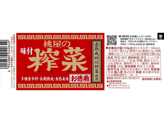 桃屋 味付搾菜 お徳用 165g 1個※軽(ご注文単位1個)【直送品】