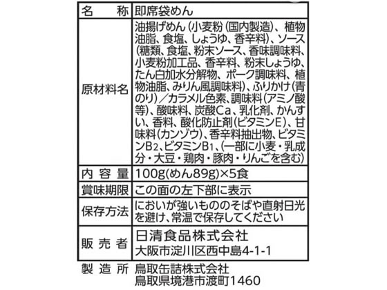 日清食品 日清焼そば 5食 1袋※軽(ご注文単位1袋)【直送品】