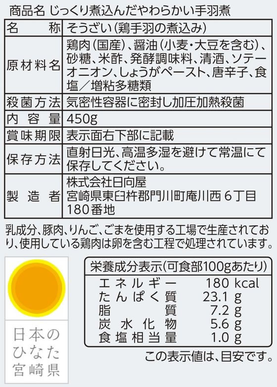 日向屋 じっくり煮込んだやわらかい手羽煮 450g 1個※軽(ご注文単位1個)【直送品】