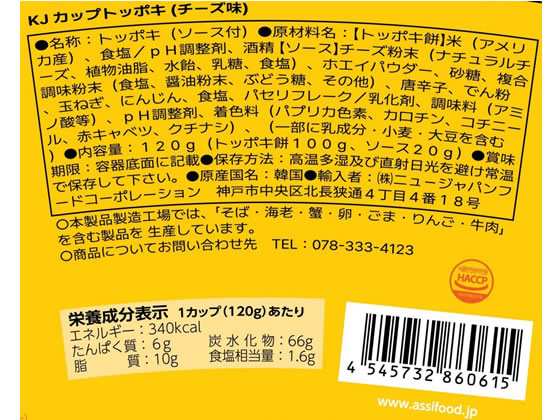 ニュージャパンフードコーポレーション KJ カップトッポキ チーズ味 120g 1個※軽(ご注文単位1個)【直送品】