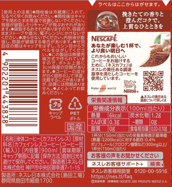 ネスカフェ ゴールドブレンド 上質なひととき カフェインレス 無糖 1本※軽(ご注文単位1本)【直送品】