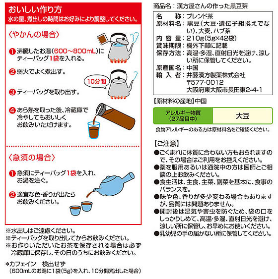 井藤漢方製薬 漢方屋さんの作った黒豆茶 5g×42袋 1個※軽(ご注文単位1個)【直送品】