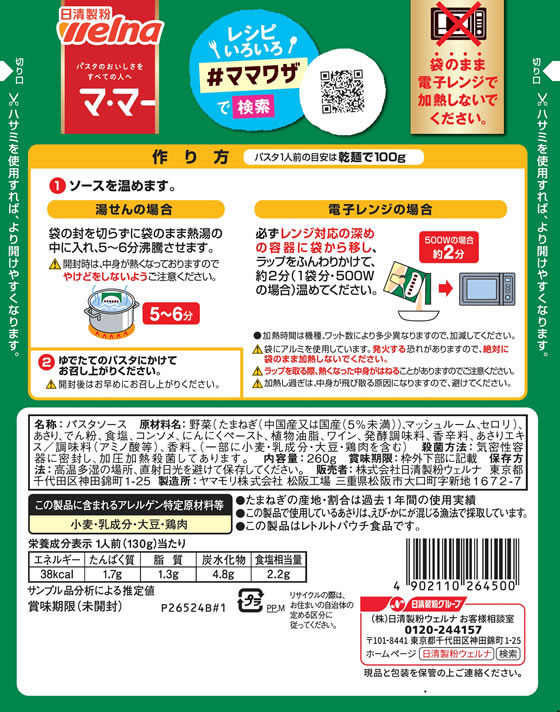 日清製粉ウェルナ マ・マー 香味野菜たっぷりの あさりコンソメ 1パック※軽(ご注文単位1パック)【直送品】