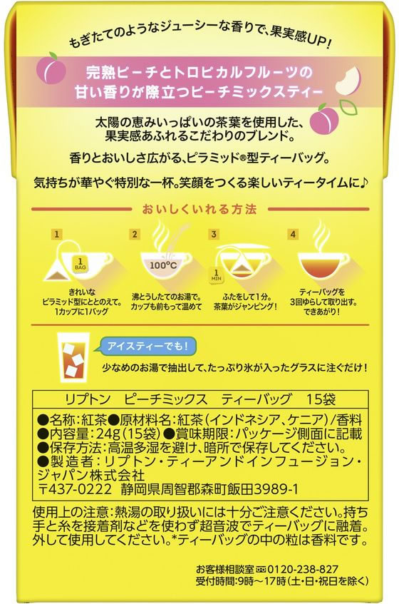 リプトン ピーチミックス ティーバッグ 15袋 1袋※軽(ご注文単位1袋)【直送品】