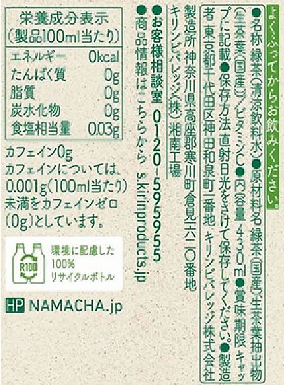 キリンビバレッジ キリン生茶 おいしいカフェインゼロ 430mL 1本※軽(ご注文単位1本)【直送品】