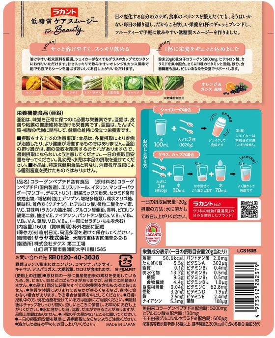 サラヤ ラカント 低糖質ケアスムージー ビューティ 160g 1個※軽(ご注文単位1個)【直送品】