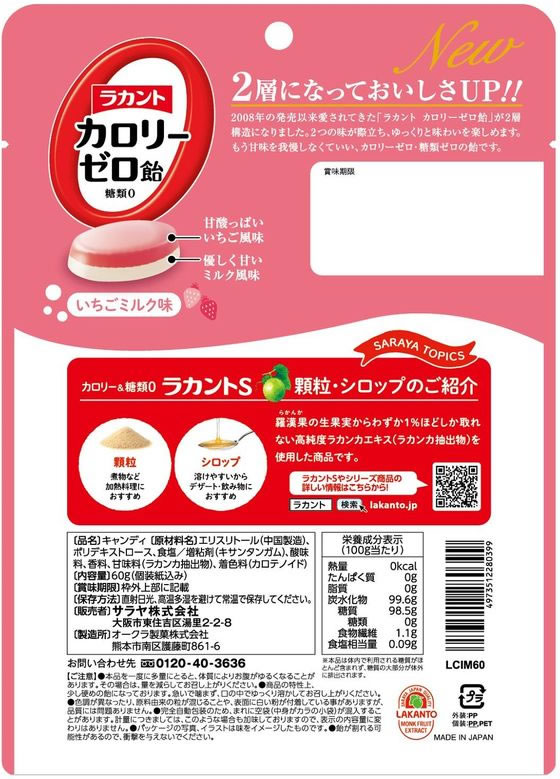 サラヤ ラカント カロリーゼロ飴 いちごミルク味60g(個装紙込み) 1個※軽(ご注文単位1個)【直送品】