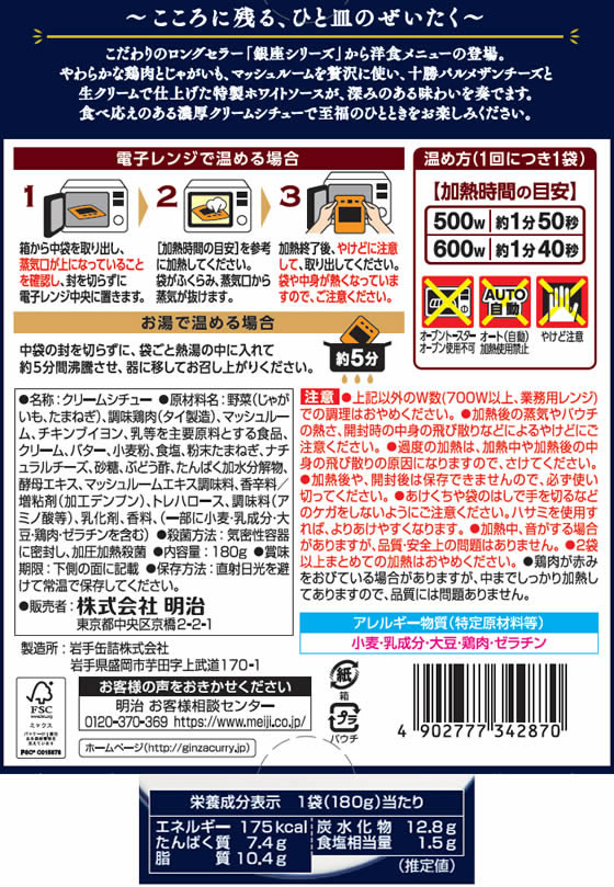 明治 銀座 洋食クリームシチュー 180g 1個※軽(ご注文単位1個)【直送品】