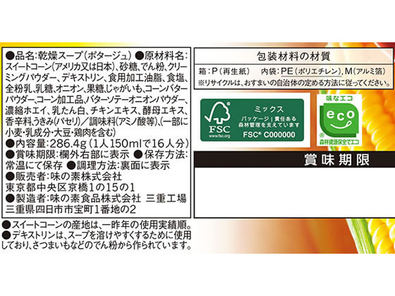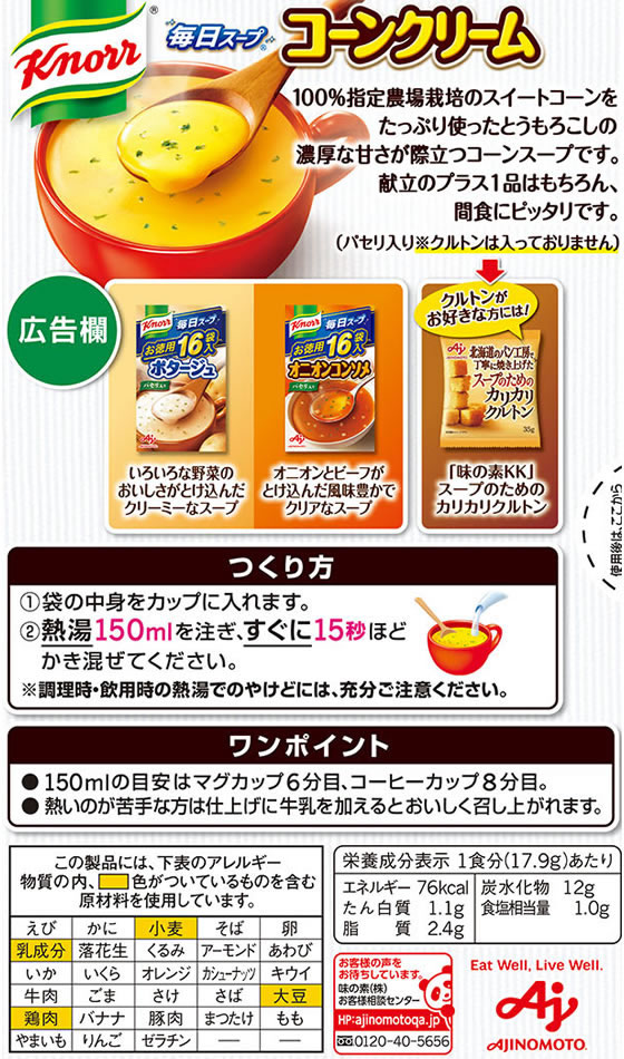味の素 クノール 毎日スープ コーンクリーム 16袋入り 1箱※軽(ご注文単位1箱)【直送品】