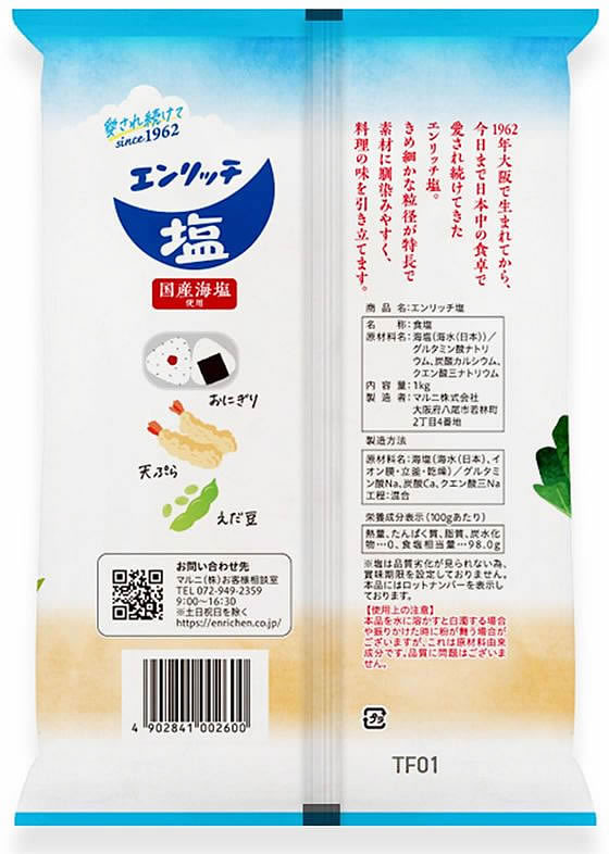 マルニ エンリッチ塩 平袋 1kg 1個※軽(ご注文単位1個)【直送品】
