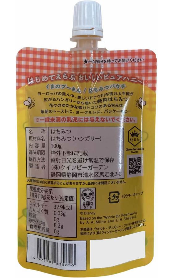 クインビーガーデン くまのプーさん はちみつパウチ 100g 1個※軽(ご注文単位1個)【直送品】