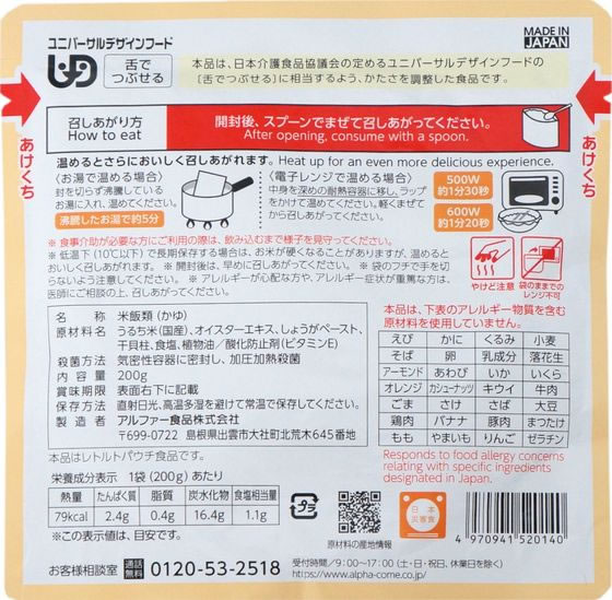 アルファー食品 レトルトタイプ 北海道産ほたて貝柱のおかゆRT 1個※軽(ご注文単位1個)【直送品】